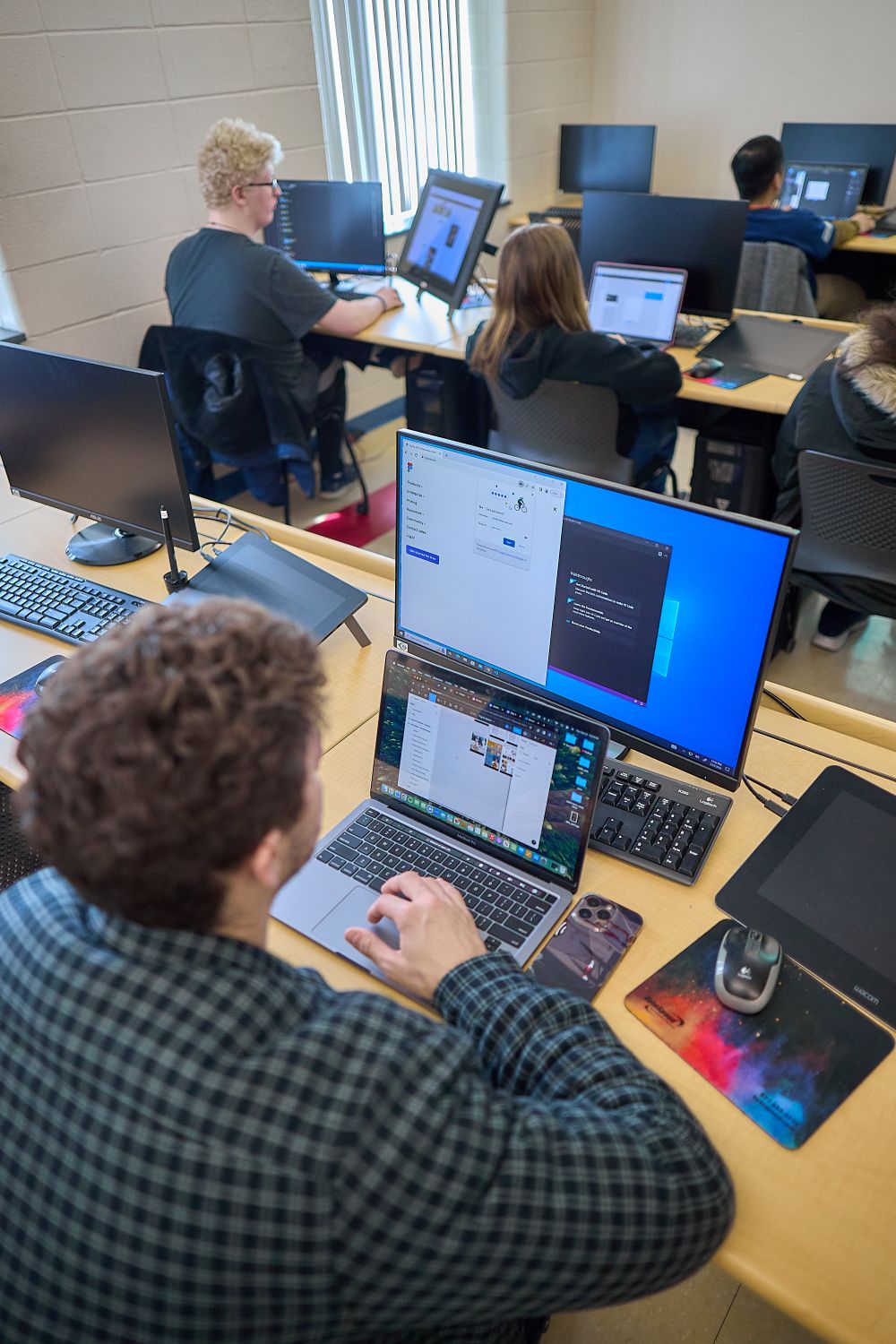 Our modern labs are equipped with dual monitor computers, digital art drawing tablets, smart boards, and flat screen televisions, and our classrooms use smart board technology. Class sizes are small, with a maximum of 30 students.